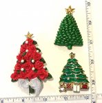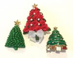 Christmas Trees THREE Vintage Rhinestone Enamel Costume Jewelry Pins