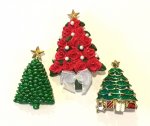 > Christmas Trees THREE Vintage Rhinestone Enamel Costume Jewelry Pins