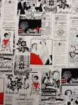 > Newspaper Clippings Retro Ladies Glamorous Vignettes Red Black White Cotton Quilting Fabric Poppy by Alice Kennedy Timeless Treasures 6986 CR253