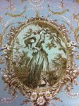 Neoclassic Medallion Toille with Vignettes of a Woman. Scroll Vine and Pearl details sepia and ivory tones CS273.